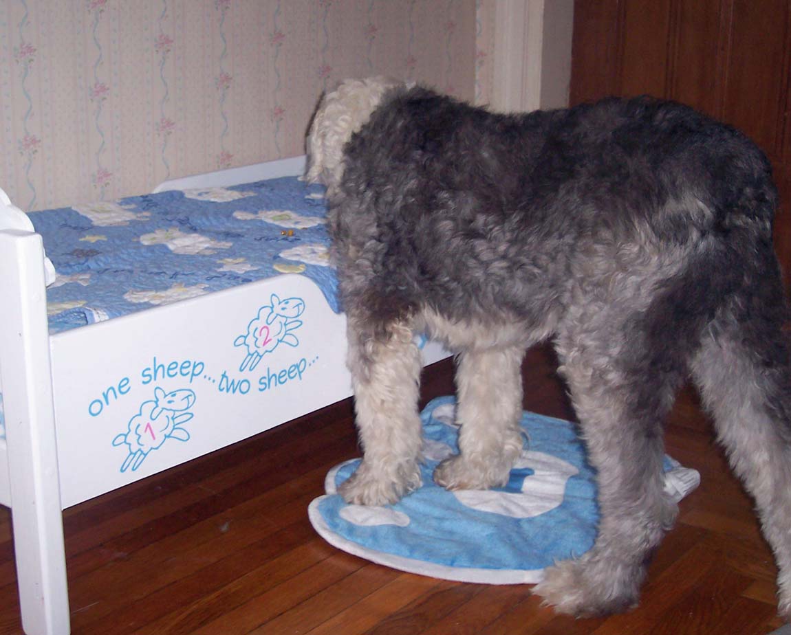 Cricky fell for the trap. She came bounding in to "show the men" how to make the bed.