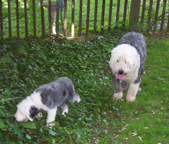 ` When, at long last, they arrived home, Auntie Molly took the puppy out to do his "business".  He sniffed around the entire yard, looking at all the wonderful things.