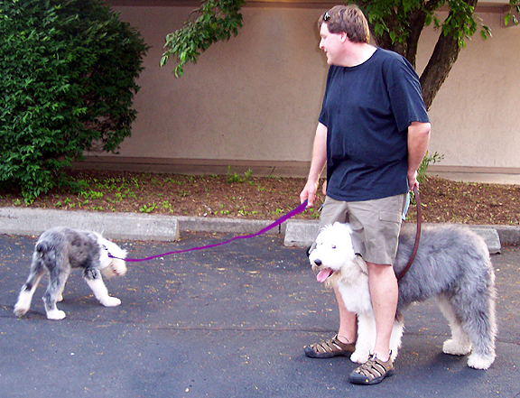 Before they left, Mark took Scruffy and Sydney for a walk.  Little Scruffy McDuff looked even tinier next to Sydney, who was a healthy grown up sheepie.